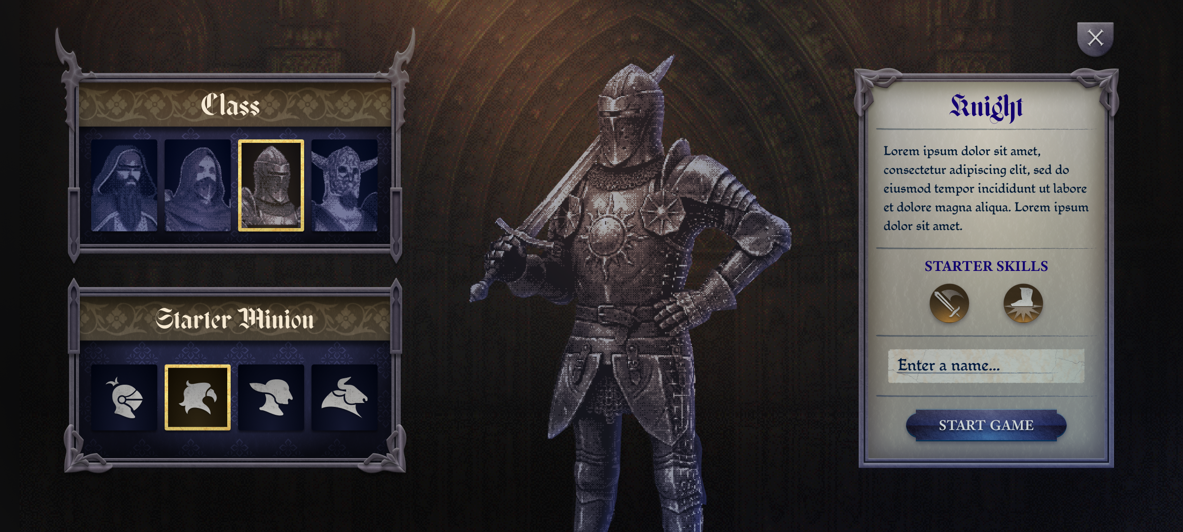 Below are the character selection interface designed to establish the game’s atmosphere and visual identity.