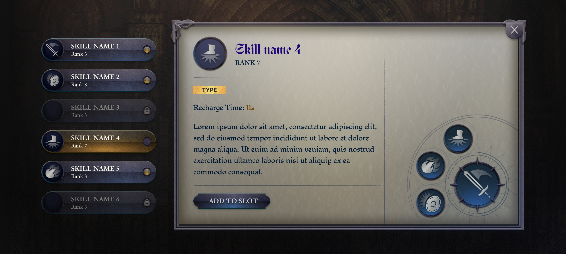 The offensive management interface where players can unlock and upgrade skills, customize their inventory, and equip minions to provide tactical support during raids.