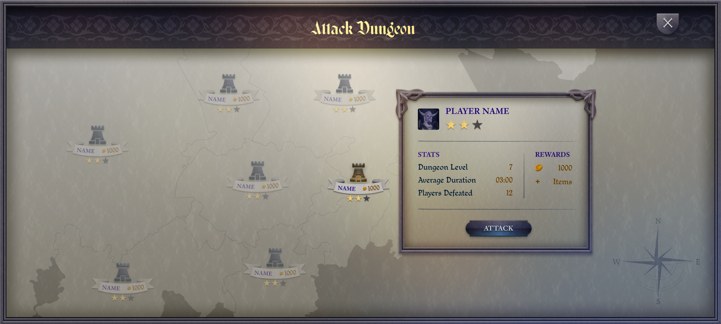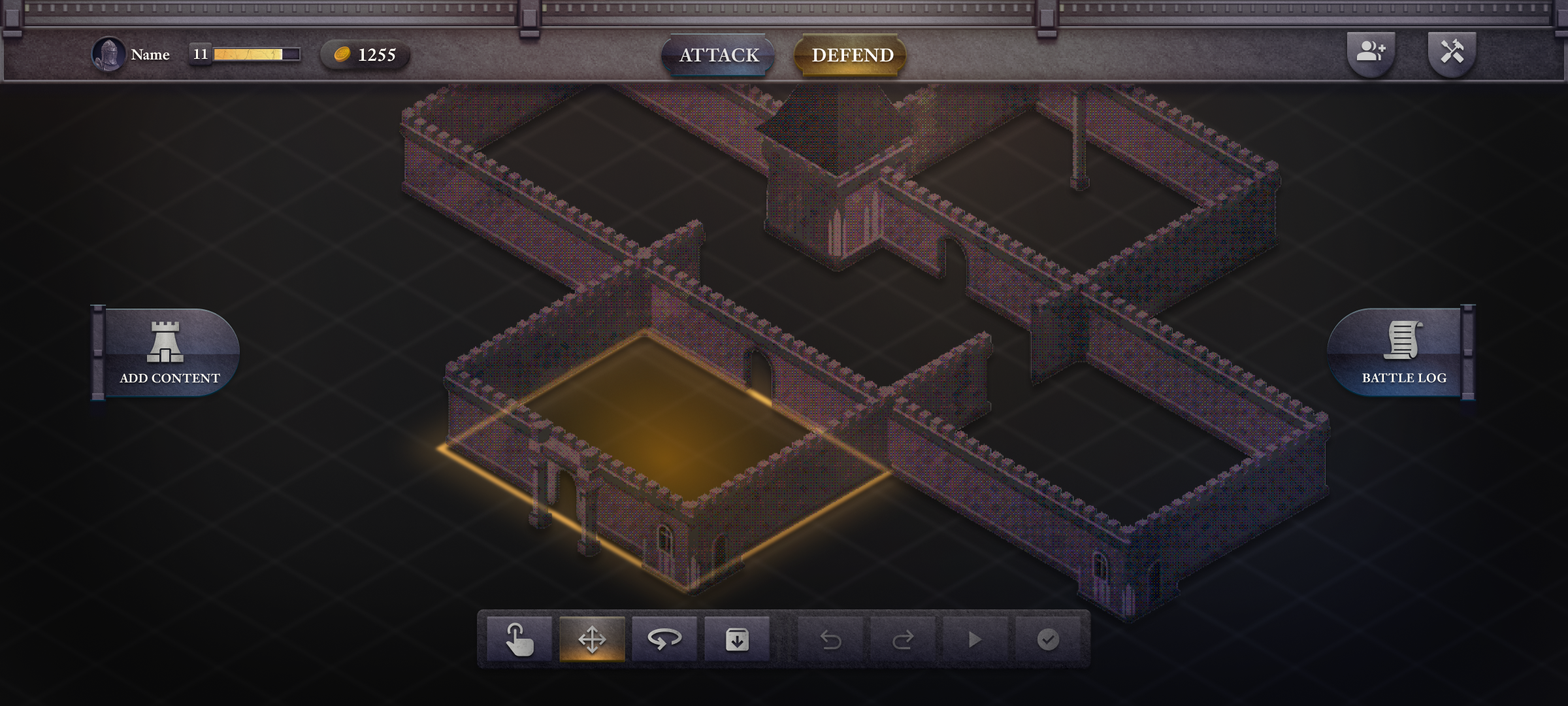 The game is a mobile experience centered on a core gameplay loop of raiding player-created dungeons while strategically constructing and upgrading personal defenses to withstand enemy attacks.